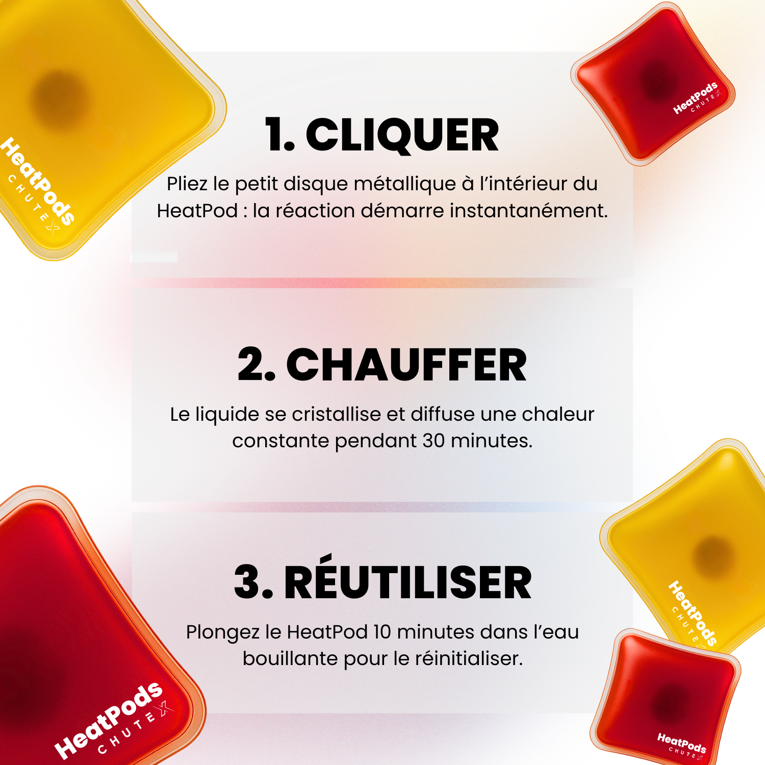 Oui ! Contrairement aux chaufferettes jetables, les HeatPods sont réutilisables plus de 10 000 fois. Après usage, il suffit de les plonger quelques minutes dans l’eau chaude pour les réinitialiser.